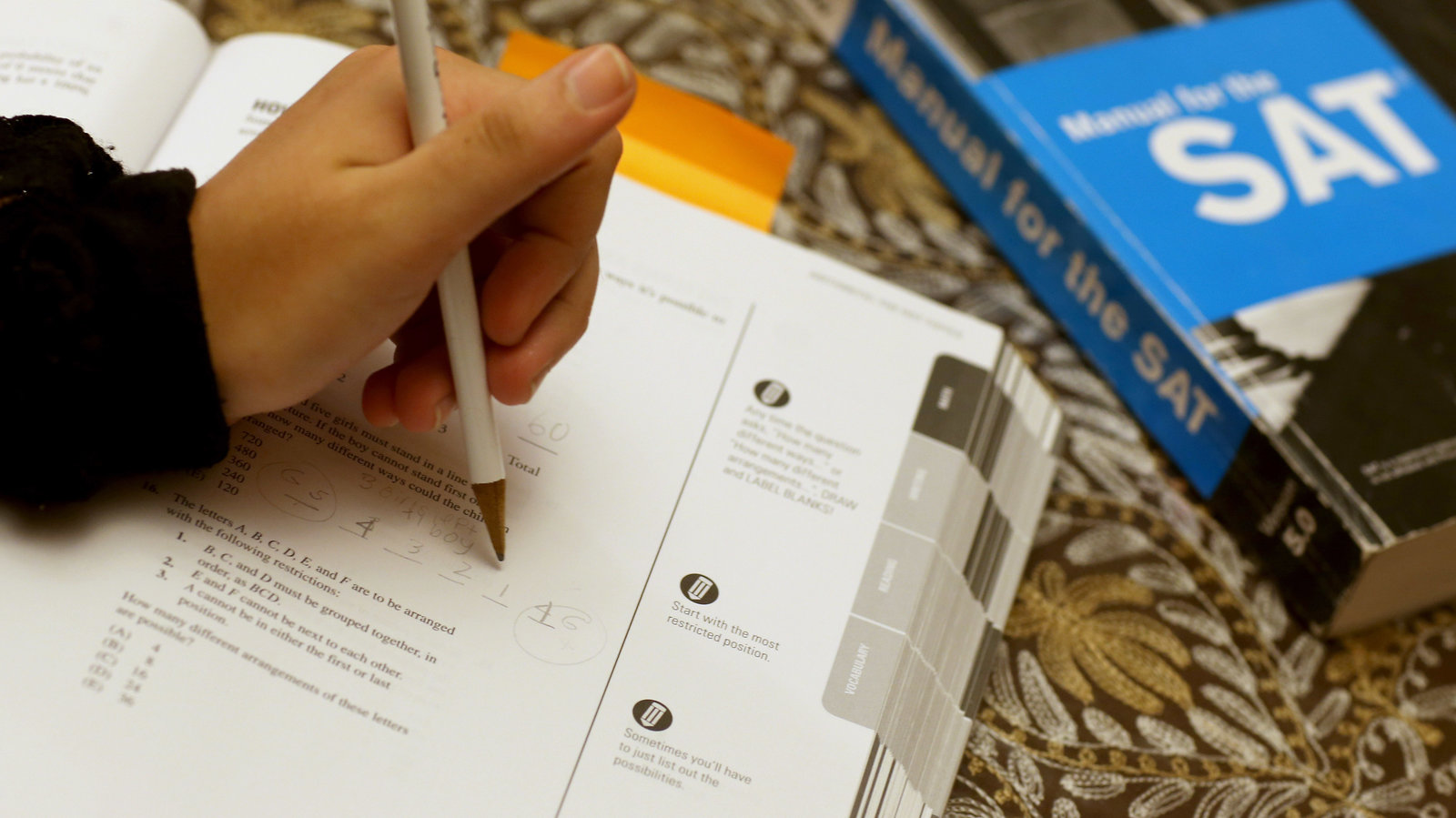 Thí sinh làm bài kiểm tra dành bảy mươi lăm phút cho phần kiểm tra ngôn ngữ và sáu mươi phút cho phần toán học. Phần toán học của bài kiểm tra đánh giá mức độ hiểu toán của học sinh, mức độ áp dụng những gì đã biết vào các tình huống mới và khả năng sử dụng kiến thức đã học để giải các bài toán khó. Mỗi phần sẽ cho điểm trên thang điểm từ 200 đến 800, với điểm tổng hợp nằm trong khoảng từ 400 đến 1.600.