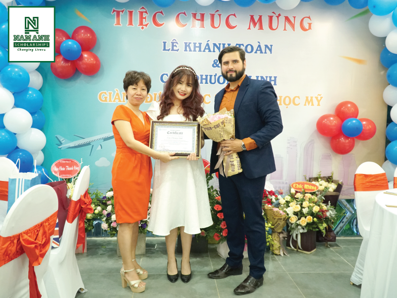 Với sự hỗ trợ nhiệt tình của Trung tâm xúc tiến học bổng Nam Anh, Cao Phương Linh đã giành được visa du học Mỹ và học bổng 20,100$ trường Pioneer Academy. Còn Lê Khánh Toàn là trường Lee Academy với học bổng trị giá 21,325$.